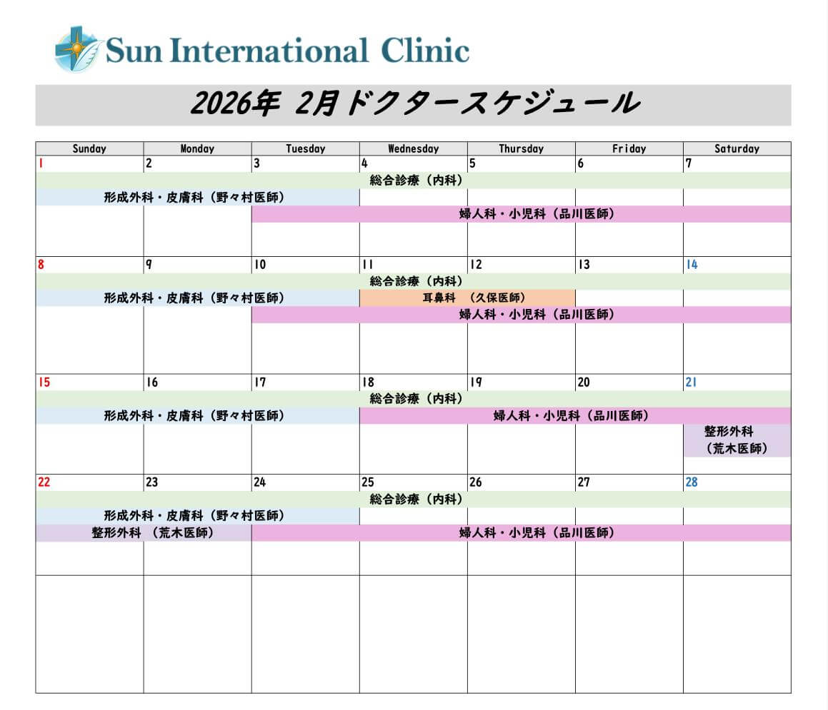 プノンペンの日系病院「サンインターナショナルクリニック」から2月の専門医診療スケジュールと、婦人科専門医・品川医師のご紹介です。